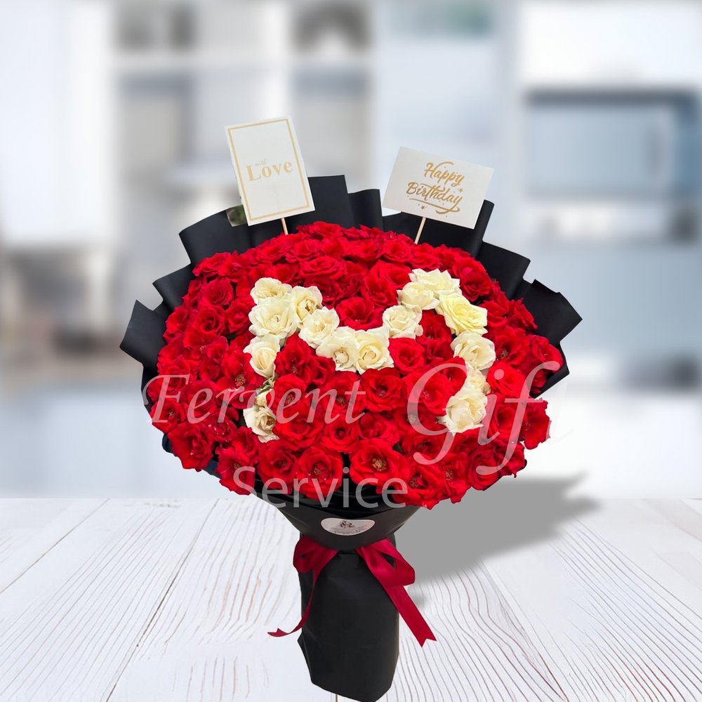 Featuring 100 stems of vibrant, locally grown red roses and 20 stems of elegant white roses, the bouquet is crafted to deliver an unforgettable visual impact. The roses are hand-picked to ensure they are fresh, fragrant, and of the highest quality. Ideal for occasions such as engagements, weddings, Valentine’s Day, Mother’s Day, or even ‘just because’, these roses create a striking aesthetic while symbolizing love and admiration.